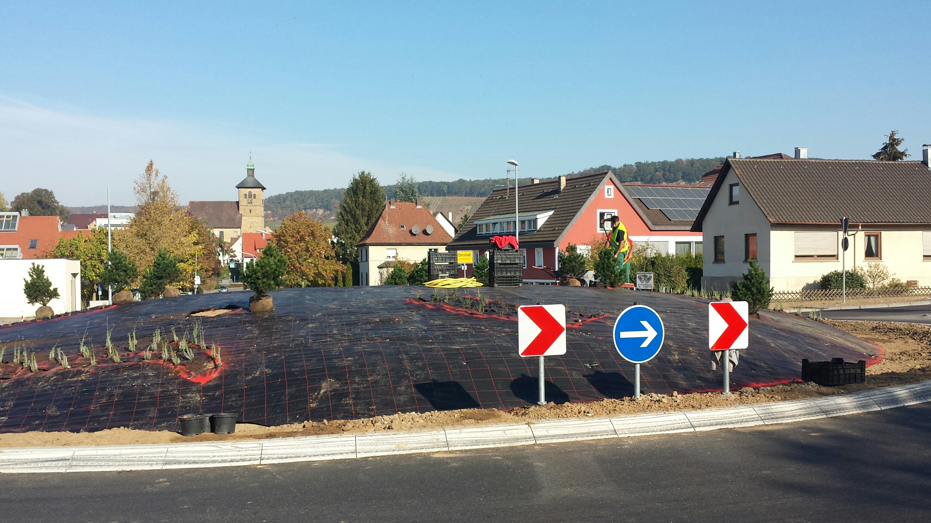 Wir fügten der Planung noch einen Fußgängerüberweg hinzu und erneuerten die Rohrleitungen unter dem Kreisel. Jetzt ist er da und es gibt keine Unfälle mehr.